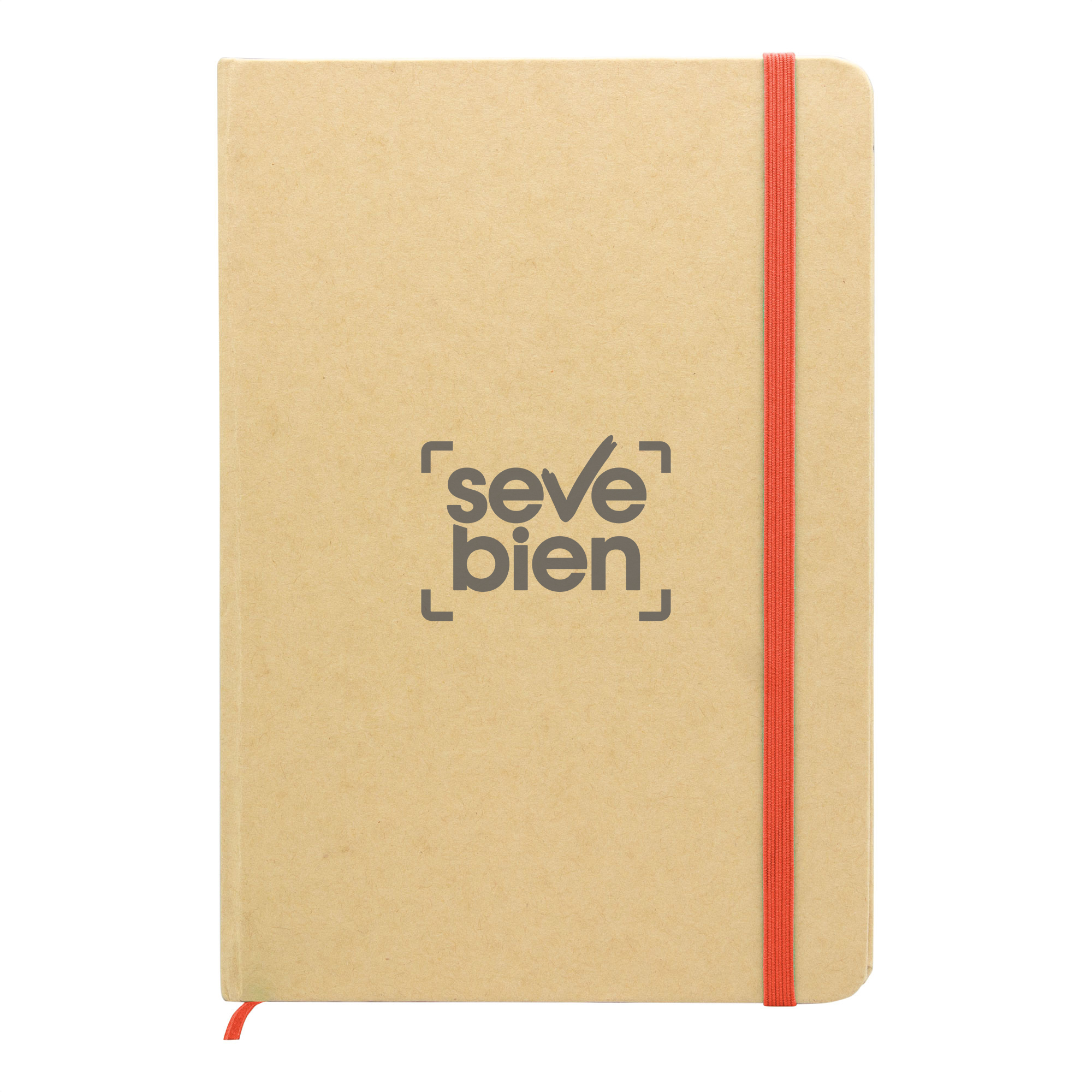 21 x 14 cm (A5). Cartón y Papel.. Libreta. Tapa en papel kraft. Interior 80 hojas rayadas en papel de 70 g. Cinta señaladora y cierre elástico del mismo color.