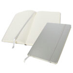 Libreta modelo «Colorskine» tamaño A6, con cubierta de cartón piedra forrada en PU simil cuero de color de 1.5mm de espesor. Interior 80 hojas lineadas amarillas de 80gsm. Incluye banda elástica y huincha separador de hojas al tono. Presentación individual en bolsa de polipropileno.