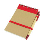 Libreta Ecológica con tapas de cartón reciclado, 70 hojas interiores blancas (croqueras). Incluye cierre elasticado de color y bolígrafo ecológico al tono.