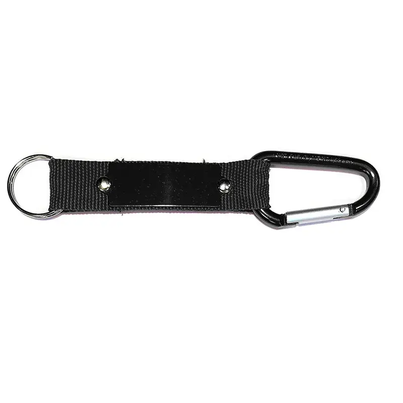 Llavero tejido de Polyester con un mosquetón de seguridad y una placa de metal para personalizar. La placa puede ser utlizada para domes o grabado láser.