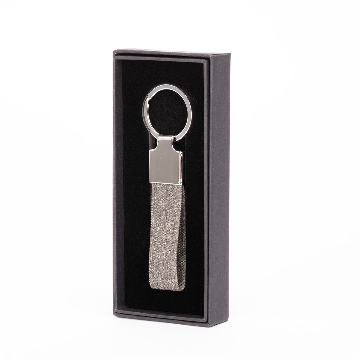 GAIA destaca por su elegancia discreta. Este llavero metálico con inserto de tela RPET gris combina acabados brillantes con materiales reciclados, ideal para entregar un mensaje fuerte a través de un objeto pequeño. Presentado en caja de regalo negra, es ideal para eventos, lanzamientos o detalles institucionales. Haz de este llavero un reflejo de tu marca: sobria, moderna y consciente del impacto que genera.