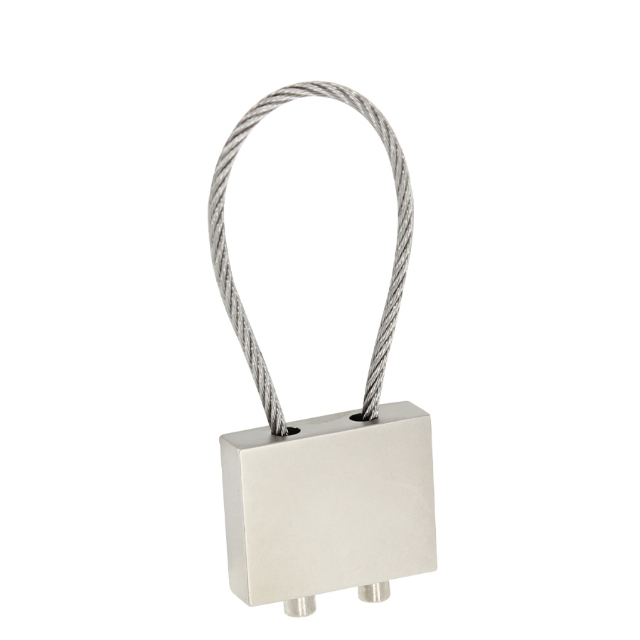 Llavero Metálico modelo «Candado». Presentación en estuche laminado negro con cuna aterciopelada.