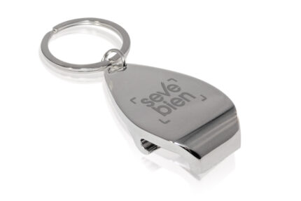 6,3 x 1,4 cm. Metal y símil cuero. Llavero plano con detalles en la parte superior símil cuero. Presentación en caja de regalo.