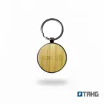 Llavero metálico con frente de bambú. Fabricado en aleación de zinc y bambú en tono natural. Cuenta con anilla resistente y diseño redondo elegante y liviano. Es ideal para regalos corporativos, ferias y merchandising sostenible.