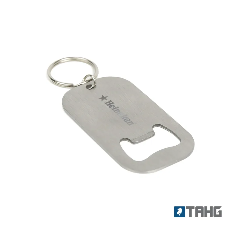 Llavero destapador metálico ultraresistente. Fabricado en Acero inoxidable 420 en color plateado. Cuenta con Anilla porta llaves y cuerpo plano de fácil agarre. Es ideal para Eventos promocionales, kits corporativos y uso diario
