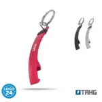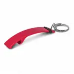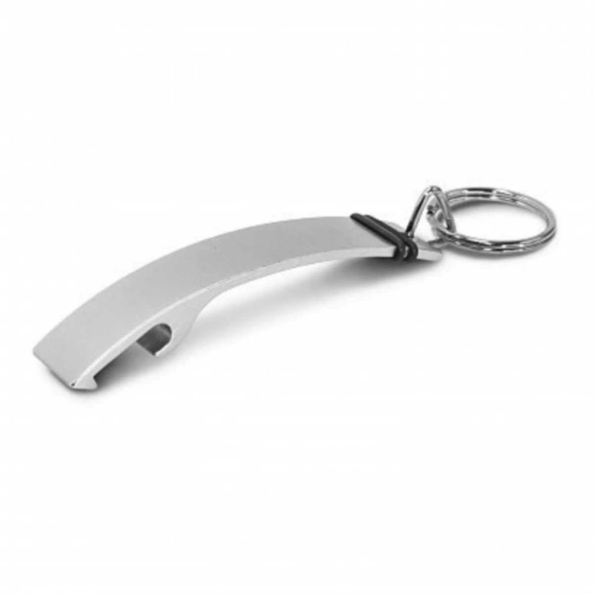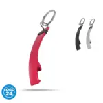 Llavero abrebotellas de metal con grip de goma antideslizante. Medidas: 1,5 x 7,9 x 1,2 cm. (anillo de 24 mm de diámetro).