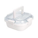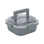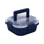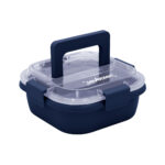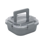 17,8 x 17,8 x 7,6 cm. Capacidad 1 litro. Plástico Polipropileno. Contenedor de alimentos. Tapa translúcida con cuatro clips de cierre hermético y asa para trasladar cómodamente. Clips y asa del mismo color que el recipiente.