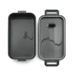 Contenedor para alimentos de PP y silicona. Hecho a base de polipropileno (PP) y silicona. Cuenta con una tapa con cierre firme y detalles en negro, diseñada para mantener los alimentos frescos y seguros. Su estructura liviana lo hace fácil de transportar.