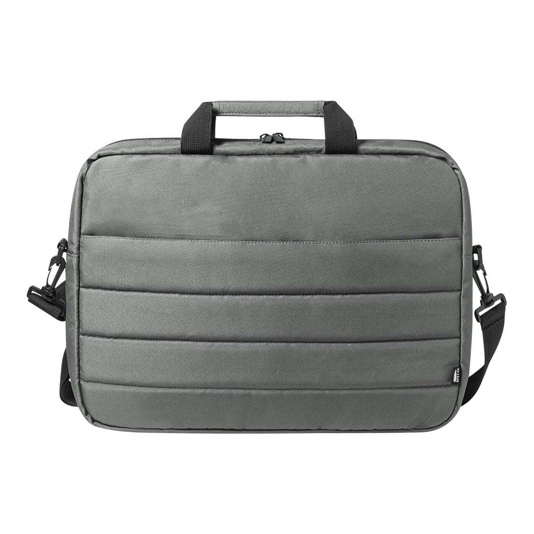 Maletín de línea nature con diseño urbano y acolchado total. Fabricado en resistente RPET 300D elaborado a partir de plástico reciclado, para así fomentar la reutilización de residuos plásticos y contribuir a la sostenibilidad del planeta. Accesorio para ajuste en trolley, con compartimento interior acolchado para ordenador portátil de hasta 15 pulgadas. Bolsillo principal con cierre de cremallera y tirador metálico. Cómodas asas de transporte reforzadas y cinta bandolera ajustable, con refuerzo acolchado para hombro y cierres giratorios de mosquetón. Distintivo RPET en etiqueta. Acolchado. Bolsillo Acolchado para Portátil