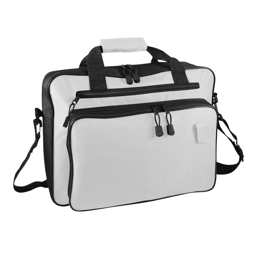 Maletín Portadocumentos de tela raquelada Polyester 600D modelo «Melbourne», con bolsillo delantero, organizador interior y salida para auriculares.