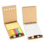 Memo Set Ecológico. Incluye 1 Bolígrafo Ecológico corto + 125 banderitas adhesivas de colores + 25 notas adhesivas rectangulares + Block de Notas con 60 hojas blancas lineadas. Terminación Espiral Doble Cero Metálico.