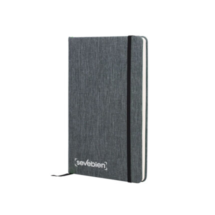 10,5 x 7,8 x 1,1 cm. Cartón. Material reciclado. 80 hojas lisas blancas. 5 blocs autoadhesivos rectangulares de diferentes colores. 1 bolígrafo de tinta negra.
