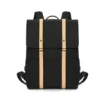 Mochila tipo urbana con solapa y broches metálicos, confeccionada en poliéster reciclado 600D. Cuenta con compartimiento principal bajo solapa, broches metálicos al frente, tiras ajustables y bolsillo interior. Incluye manija superior, diseño estructurado y costuras reforzadas que aportan durabilidad.