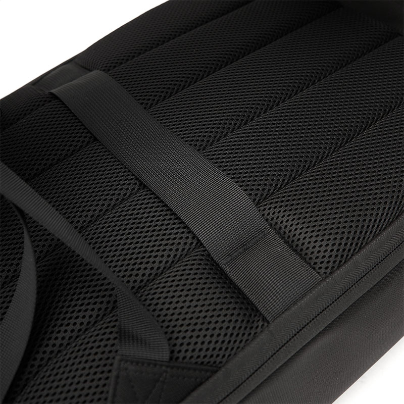 Mochila Water Resistant realizada en Poliester, con respaldo y correas acolchadas. El bolsillo principal con cierre es de apertura de 180°, tiene un espacio completamente acolchado para notebook y 3 bolsillos internos. Incluye cinta para ser transportada junto con valija carry on.