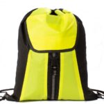 Mochila bicolor tipo Morral modelo «Studio» de poliéster 210D/PU y tela TNT, con bolsillo delantero y tiras de cordón negro.