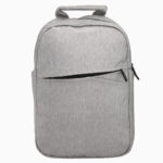 Mochila Porta-Notebook modelo «Alaska». Tela PU 300D Two-Tone impermeable. Capacidad 13 litros, tamaño 30 x 47 x 9 cm. Incluye compartimento interior reforzado y acolchado para Laptop. Bolsillos interiores y delantero.