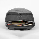 Mochila Porta-Notebook modelo «Finland». Tela PU 300D Two-Tone impermeable. Capacidad 16 litros, tamaño 34 x 47 x 10 cm. Incluye compartimento interior reforzado y acolchado para Laptop. Bolsillos interiores y delantero.