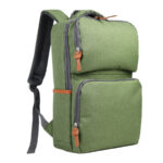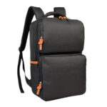Mochila Porta-Notebook modelo «JAZZ». En tela poliéster 600D/PVC con detalles y tiradores de cierre en 210D/PU color marrón. Capacidad 11 litros, tamaño 27.5 x 41 x 9.5 cm. Incluye múltiples compartimentos interiores reforzados y acolchados para Laptop + 2 bolsillos delanteros + 2 bolsillos laterales.