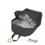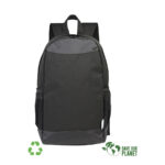 Mochila Porta-Notebook modelo «RPET». Fabricada en material reciclado RPET y poliéster 250D/PVC. Capacidad 20 litros, tamaño 29 x 48 x 14.5 cm. Incluye compartimento interior reforzado y acolchado para Laptop, bolsillo delantero y 2 bolsillos laterales con malla.