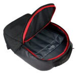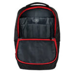 Deluxe Mochila Porta-Notebook modelo «WENZER». En tela poliéster mallado con membrana epitelial + eco-cuero PU 840D. Capacidad 16 litros, tamaño 30 x 44 x 12 cm. Cuenta con compartimiento delantero para notebook y tablet, + bolsillo delantero + compartimento principal con apertura posterior lateral (en vertical) de seguridad, para acceso directo a la notebook. Sujetador de Carry-on. Espaldar y correas regulables acolchados, y un cuarto compartimento (bolsillo) en el espaldar, para guardar elementos pequeños con máxima seguridad anti-robos.