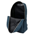 Mochila de poliéster 300D/PVC denim, modelo «SET». Capacidad 14.5 litros, tamaño 29 x 42 x 12 cm. Incluye compartimento principal + bolsillo delantero, completamente forrados en eco-cuero PU 210D. Correas ajustables.