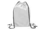 41 x 31 cm. Capacidad 4 litros aprox. Non Woven. Mochila marinera con dos cordones. Los cordones sirven para llevar la mochila en la espalda. La parte superior se cierra ajustando los cordones. En la parte inferior los cordones pasan por un ojal.