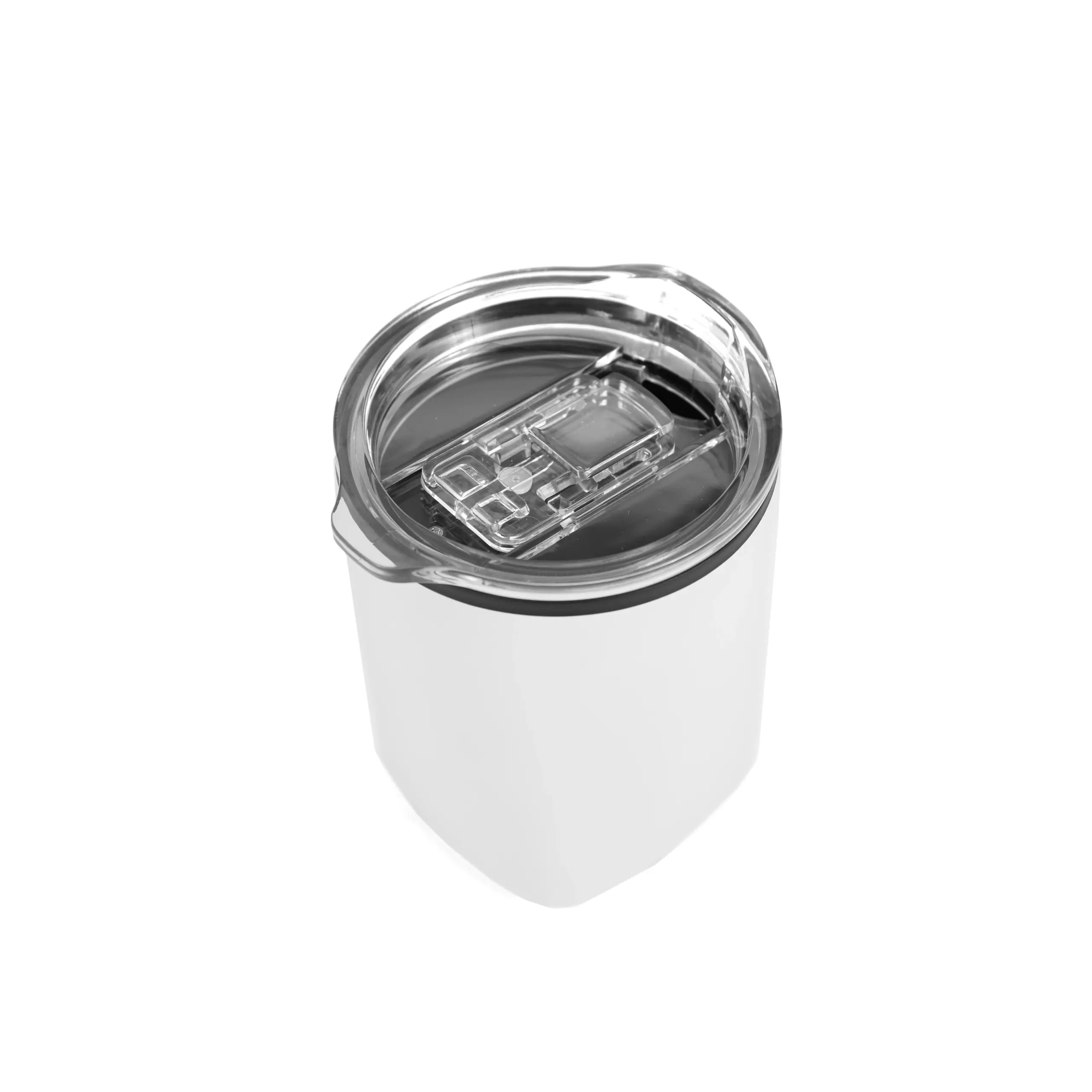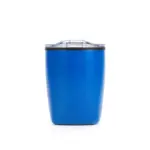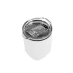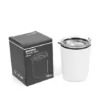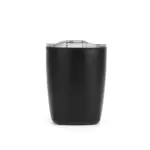 Mug térmico realizado en acero inoxidable en su exterior, y polipropileno de color negro en su interior, con tapa transparente cristal clear con cierre y base antideslizante.