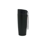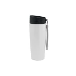 Ø 6 x 19,5 cm. Capacidad 350 ml. Acero inoxidable. Mug doble pared Interior acero 304 y exterior acero 201. Tapa a rosca, botón para abrir y cerrar. Lazo para sujetar en la muñeca. Base antideslizante. Mantiene las bebidas frías o calientes por más tiempo. Presentación en caja de regalo.