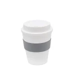 Vaso reutilizable con banda de silicona personalizable. Fabricado en Polipropileno. Producto apto para uso en microondas y lavavajillas. Medidas con tapa: 12 cm x diámetro 8,5 cm. Altura sin tapa: 9,5 cm. Capacidad: 350 ml. Producto libre de BPA. LOGO24: Producto disponible para el servicio de logueo en 24 horas respetando unidades mínimas de logueo y 250 unidades máximas. Consultar términos y condiciones del servicio