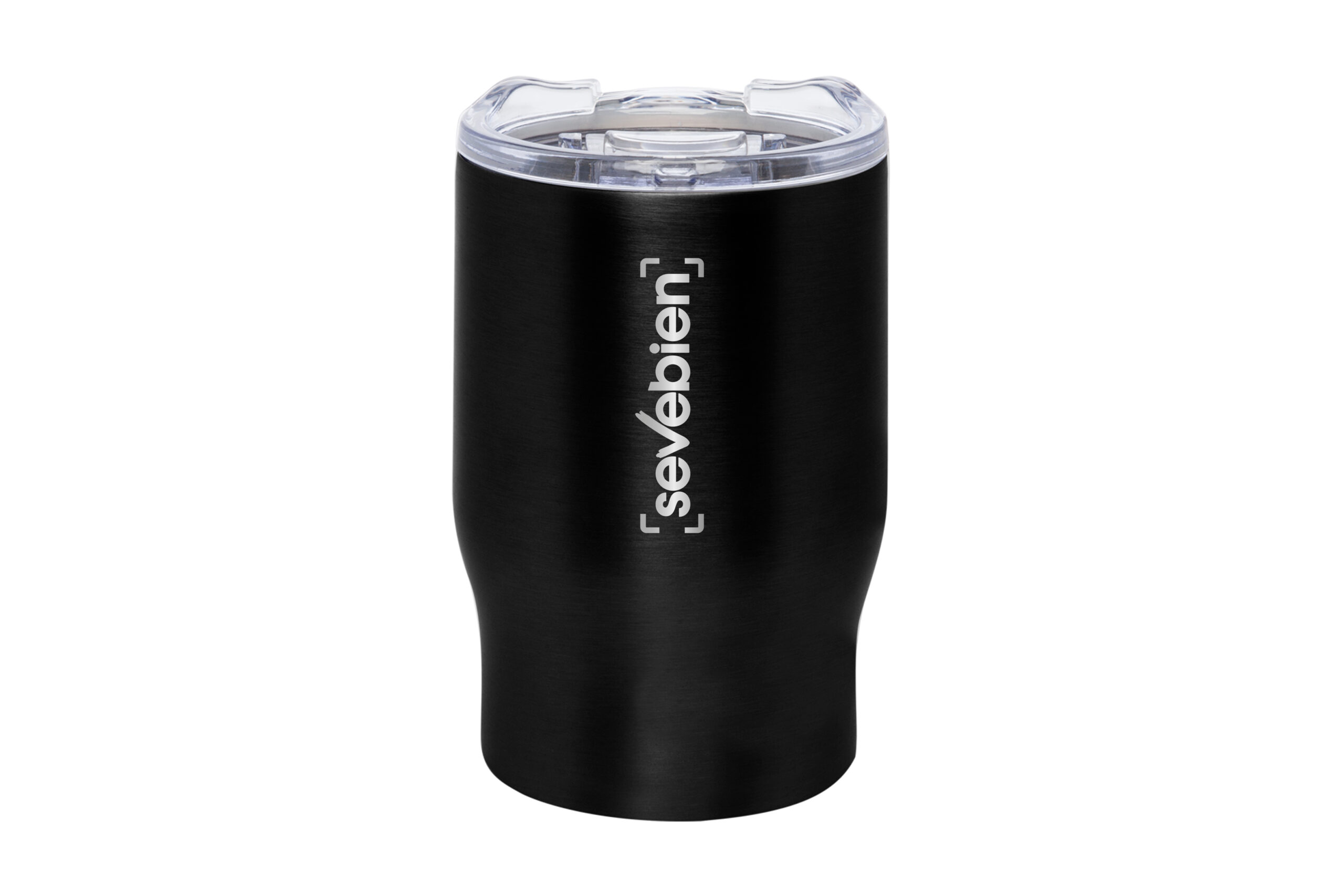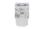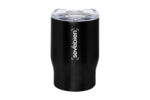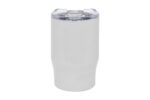 Ø 8,5 x 13,3 cm. Capacidad 350 ml. Acero inoxidable. Mug doble pared. Interior de acero 304 y exterior de acero 201. Tapa plástica transparente a presión con anillo de silicona. Mantienen las bebidas frías y calientes por más tiempo. No utilizar con bebidas gaseosas. Presentación en caja de regalo.