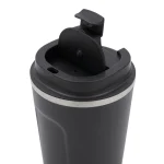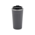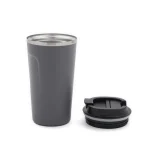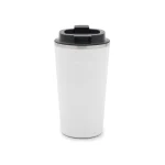 Mug construido en doble pared de acero inoxidable, esmaltado de color en su exterior y tapa de polipropileno antiderrame. Reutilizable. El producto viene en una bolsa de PLA 100% compostable dentro de una caja de cartón. Dimensiones: 17 x 9 cm | 7 cm de base. Ideal para café, té, bebidas frías o calientes. Capacidad:500ml. Pampa Spirit.