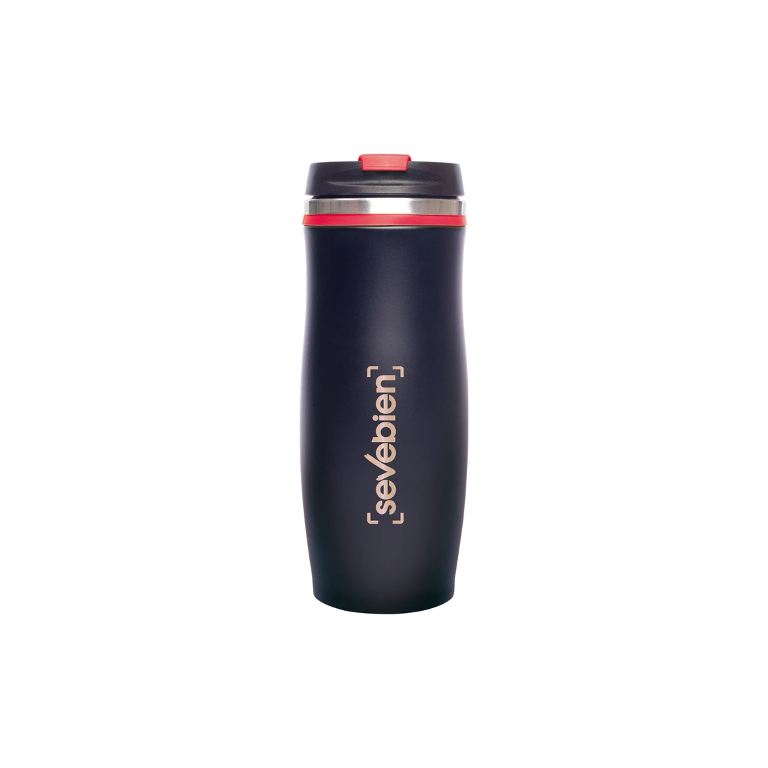 Ø 6,8 x 19,5 cm. Capacidad 380 ml. Acero inoxidable. Mug doble pared. Interior de acero 304 y exterior de acero 201. Mantiene las bebidas frías o calientes por más tiempo. Presentación en caja de regalo.