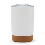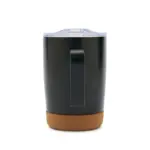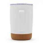 Mug de 350 ml. Con su diseño de doble pared y base de corcho, mantiene la temperatura de tus bebidas por más tiempo, mientras que su tapa anti derrame ofrece una mayor comodidad y seguridad en el uso diario. Además, cuenta con una manija ergonómica que facilita el agarre y el transporte.