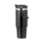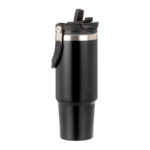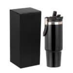 Mug térmico metálico doble pared aislante, cubierta de Polipropileno (PP) acabado mate, interior Acero inoxidable 304 SS, exterior Acero inoxidable 201 SS, modelo «HOOK». Tapa removible de plástico PP negro, con sello cilíndrico de silicona, incluye doble sistema de cierre/apertura: tapa antiderrame con tapón de silicona + boquilla para succión de líquido, bombilla plástica interior y gancho retráctil gigante, para sujetar o colgar botella. Capacidad 900ml. Producto BPA FREE, para el contacto con líquidos y alimentos. Presentación en bolsa plástica burbuja transparente + caja de regalo de cartón laminado negro.