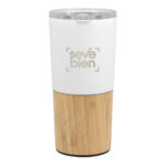 La elegancia y la funcionalidad se encuentran.Mug doble pared, sellado al vacío. Interior en acero 304 / exterior en acero 201, con detalles de Bambú. Tapa plástica transparente a presión con anillo de silicona. Mantiene hasta 12 hs la temperatura de las bebidas calientes y 24 hs de las bebidas frías. Medidas: Ø 8,6 x 18,5 cm.