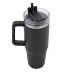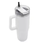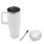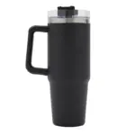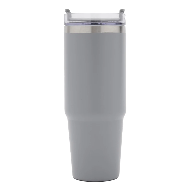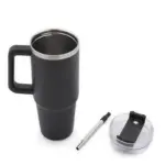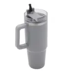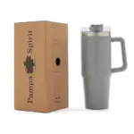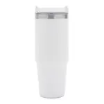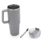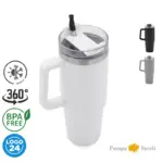 Mug de doble pared con capacidad de 30 oz (887ml). Está confeccionado en acero inoxidable 304 en su interior, y su exterior en acero inoxidable esmaltado. Tapa realizada en ABS y PP, con sorbete incluido de acero inoxidable y silicona.