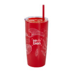 Disfruta de tus bebidas favoritas con comodidad.Mug doble pared con sorbete. Tapa plástica transparente a presión con anillo de silicona. Sorbete de polipropileno y cierre deslizante del mismo color que el cuerpo. Cuerpo con acabado brillante. Medidas: Ø 9 cm x 18,6 cm.