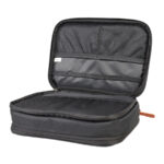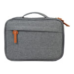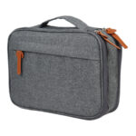 Necessaire bolso cosmetiquero colgante grande, doble compartimento, en tela poliéster 300D/PVC. Incluye bolsillo delantero con cremallera y tirador de eco-cuero. Un infaltable en tu baño y tus viajes.