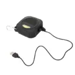 Parlante Bluetooth, con luz de 5V. Cuenta con gancho para transportarlo. Está realizado en ABS y silicona. Batería: 600mah. Medidas: 9 x 9 x 3,3 cm.