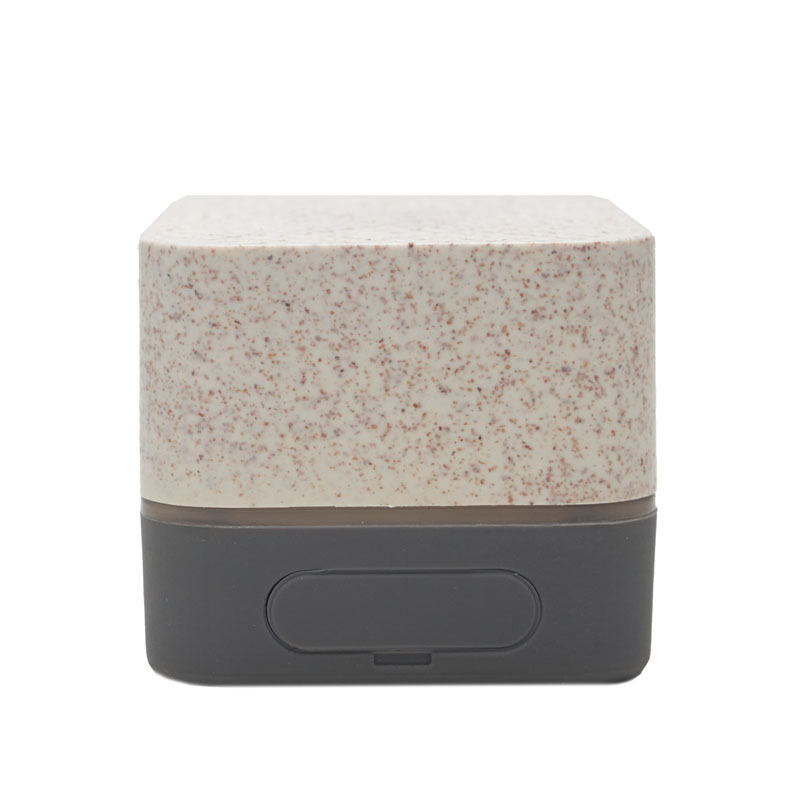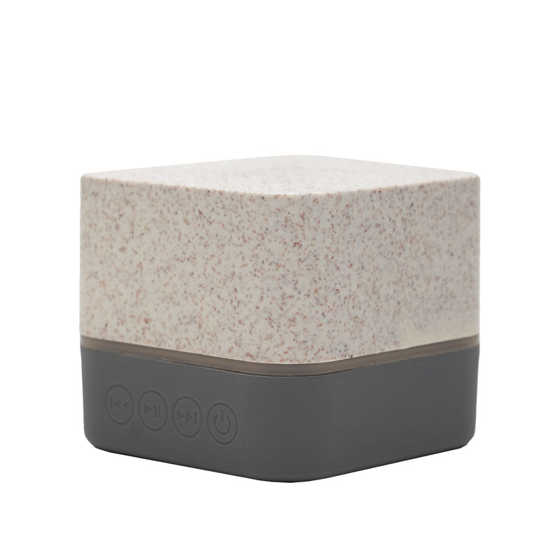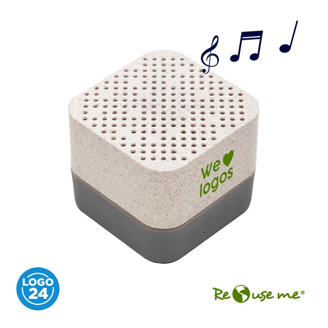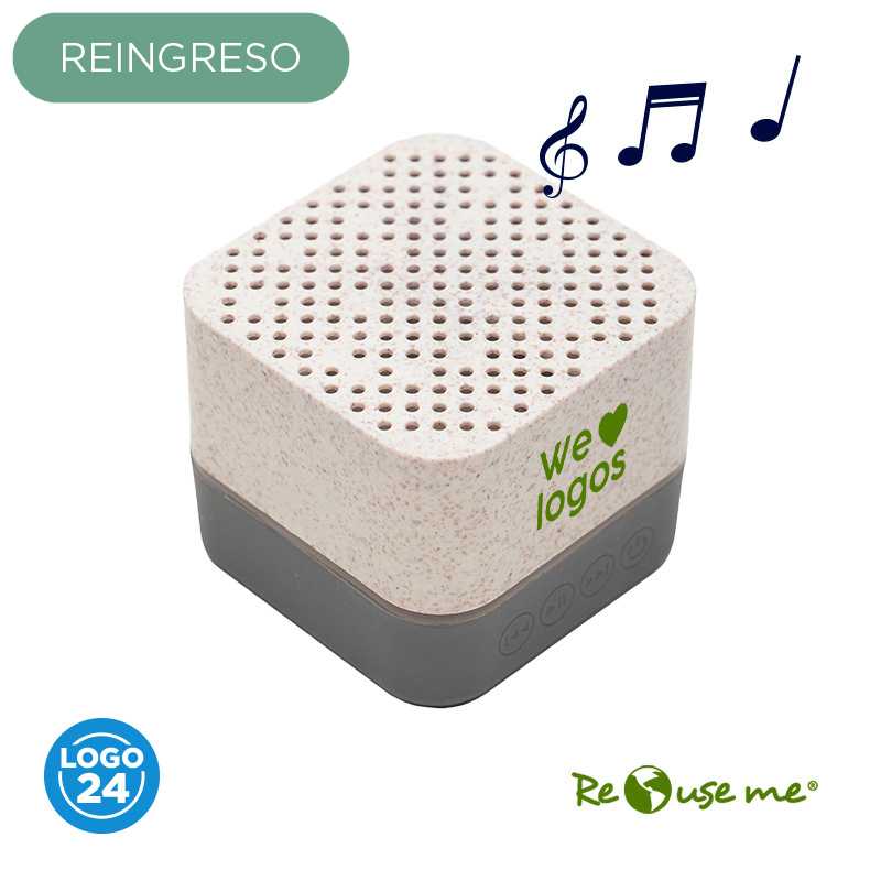 Parlante portátil con tecnología Bluetooth 5.0. Realizado en combinación de PP con Silicona y Wheat Straw, pasta de paja de trigo, un material sustentable que reduce el consumo de plásticos vírgenes. Su peso es de 116gr, y entre sus características técnicas encontramos: Bateria de 300mAh. Poder del parlante:3W * 1. Frecuencia: 200Hz-20KHz. Conexión:5V / 500mA. Distancia de alcance: 10 Metros. Medidas: 5,85 x 5,85 x 5,1 cm. Re use me. LOGO24: Producto disponible para el servicio de logueo en 24 horas respetando unidades mínimas de logueo y 56 unidades máximas. Consultar términos y condiciones del servicio. ReUseMe.