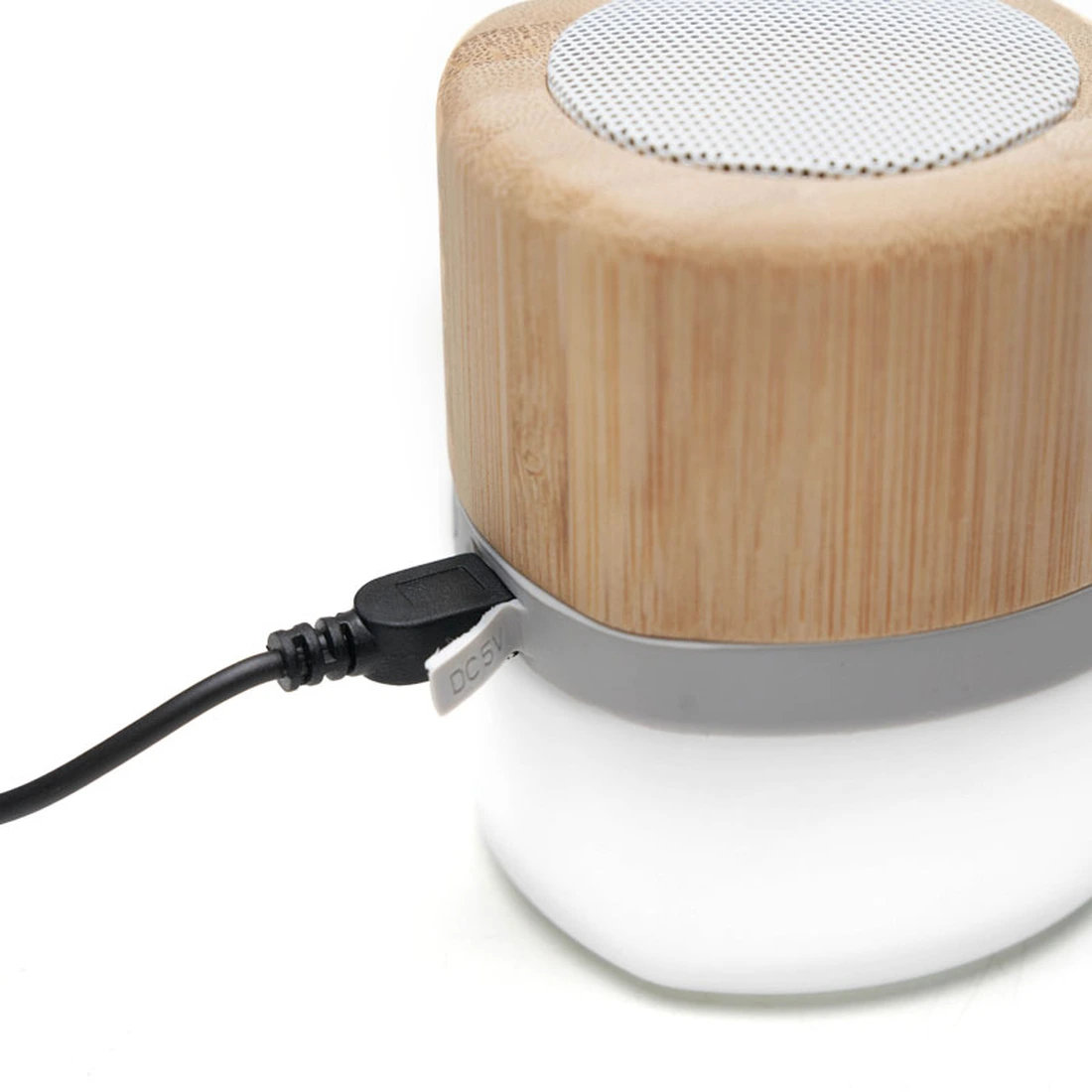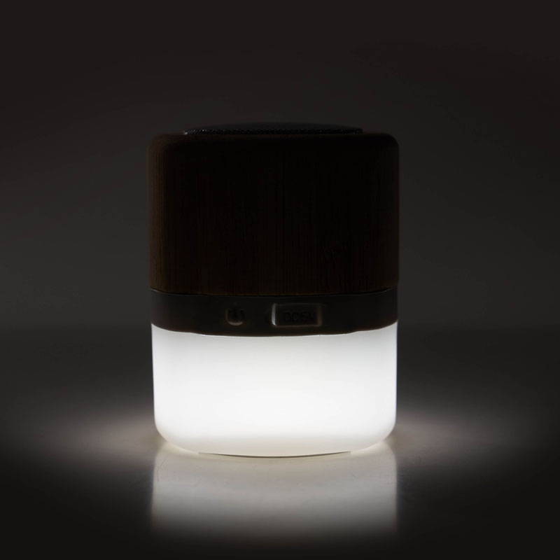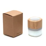 Parlante portátil con tecnología Bluetooth. Realizado en combinación de ABS con Silicona y bamboo, con iluminación en la base. Características técnicas: Batería de 300mAh | Poder del parlante: 3W | Frecuencia: 200Hz-20KHz | Conexión: 5V / 500mA | Distancia de alcance: 10 Metros | Peso 150gr | Medidas: 6 x 6 x 7,5 cm. ReUseMe
