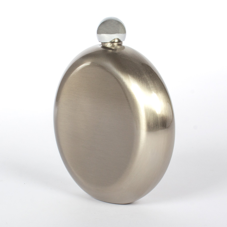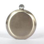 Licorera (Petaca) redonda de Acero Inoxidable con tapa redonda, para Sublimación. Capacidad 300cc (10oz). Presentación en bolsa PP translúcida + estuche de cartulina blanca.