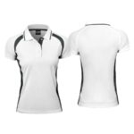 Fina Polera deportiva 100% poliéster de 140gr/m2, para MUJER, bicolor detalles grises. Cuello polo, manga corta. Ideal para uso en tenis y deportes indoor. Presentación individual en bolsa de polipropileno transparente.
