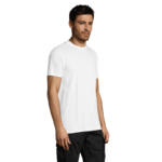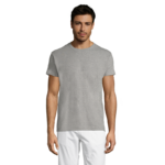 Polera de manga corta de corte regular, confeccionada en Jersey de 150g, 100% algodón semi-peinado, diseñada en formato tubular (sin costuras a los costados) y cuello con tapacosturas.