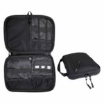 Bolso Porta-Accesorios de Viaje, en tela Polyester 840D. Gran cantidad de bolsillos y compartimentos para accesorios, bolígrafos, tarjetas de memoria, etc. Con gancho de tela para colgar. Un bolso práctico y pequeño, ideal para llevar dentro de tu equipaje de mano.