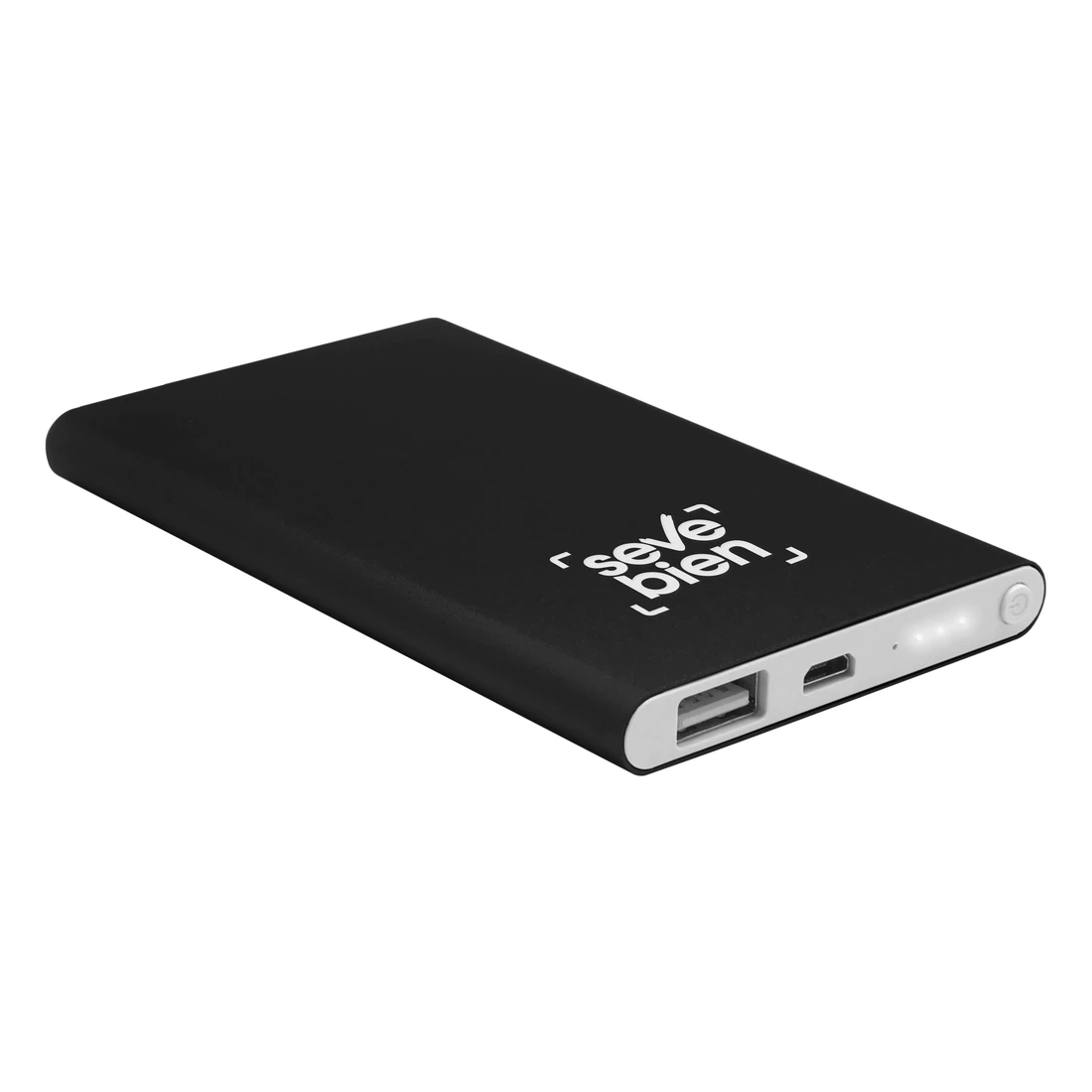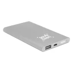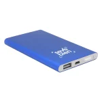11 x 6,5 x 1 cm. Capacidad 4000 mah. Metálico. Power Bank. Cuerpo de color. Dos entradas: una USB y una mini USB. Botón de encendido y luces led indicadora de carga. Con certificación de calidad. Presentación en caja de regalo.