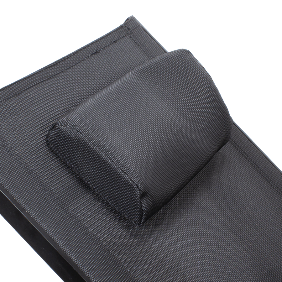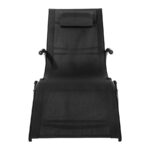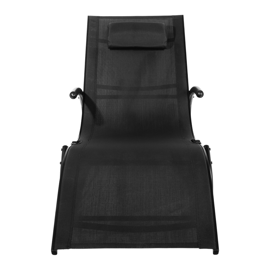 Reposera mecedora negra con apoya-brazos, modelo «Ventus». Estructura de Aluminio color negro, asiento de Textilene negro. Descanso y relajo verdaderos.