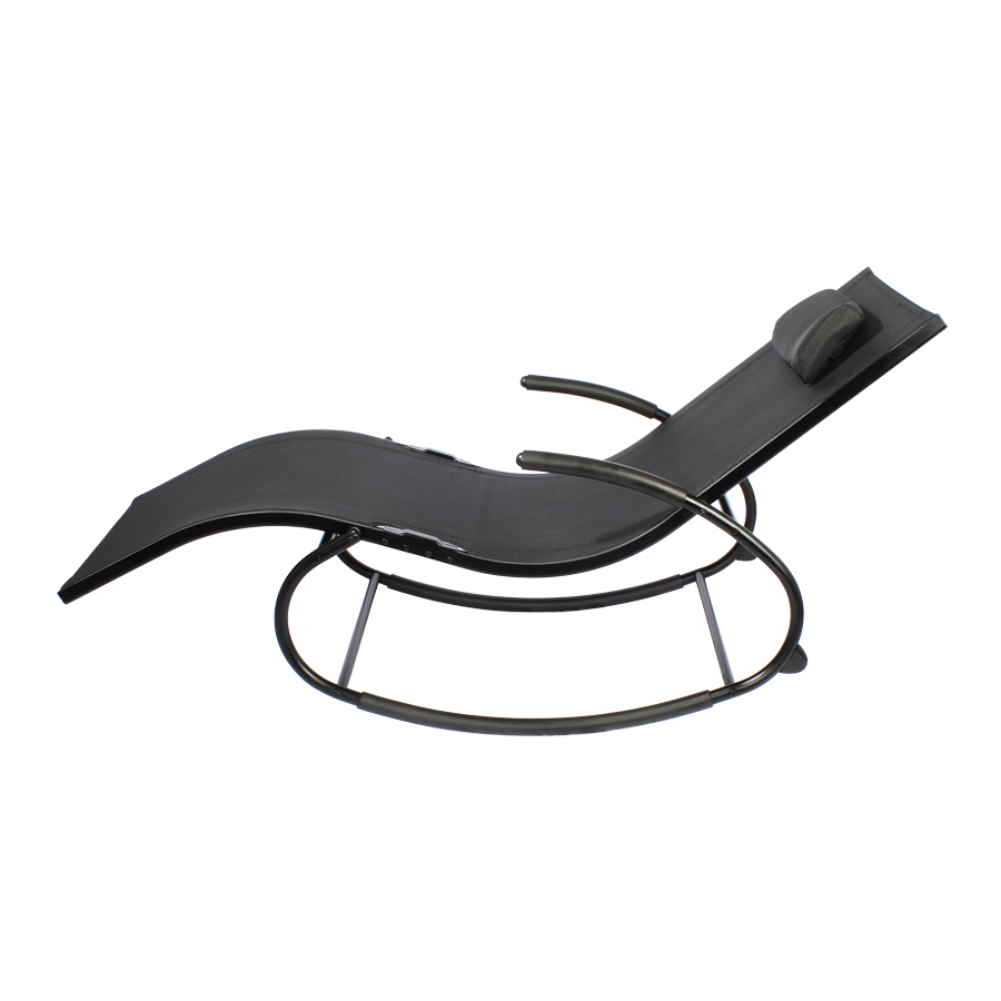 Reposera mecedora negra con apoya-brazos