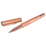 Roller Pen Metálico Encobrizado, con terminales color cobre. Escritura Azul.