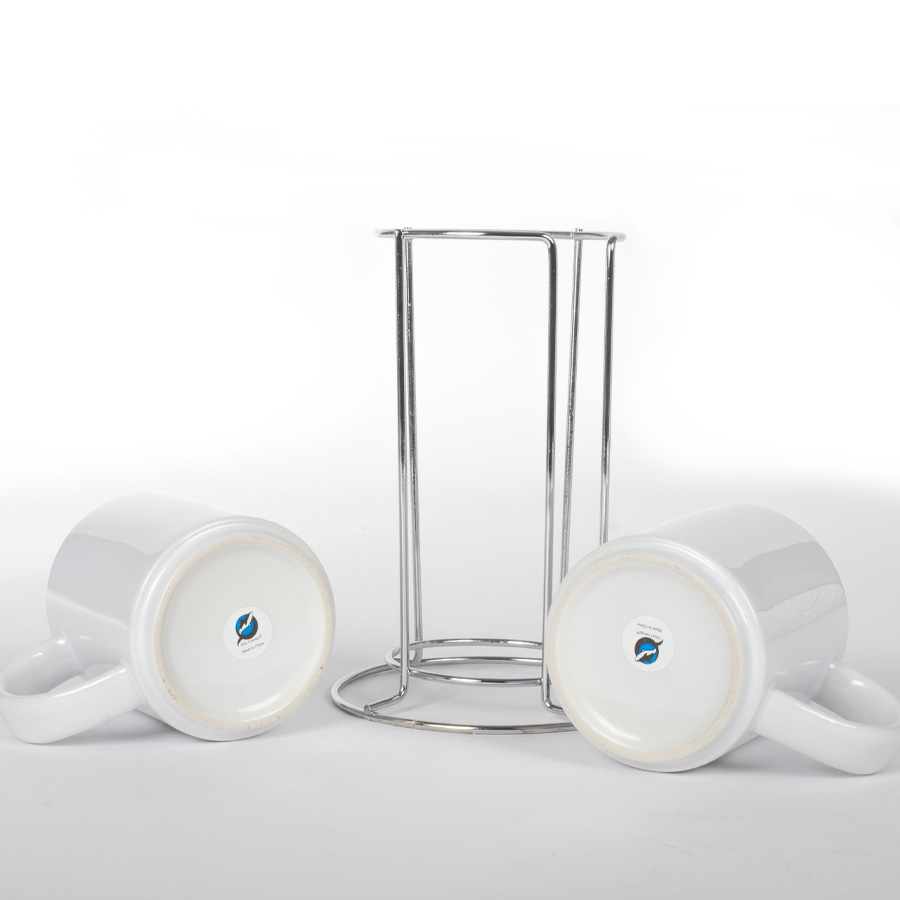 Set de 2 tazones cerámicos para Sublimación, en contenedor de Acero Inoxidable. Calidad superior «ORCA». Capacidad de cada Tazón: 250cc. Presentación en bolsa PP translúcido + estuche de cartón blanco.